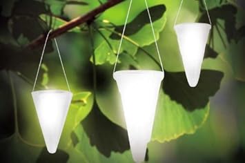 - Unique Hanging Solar Garden Lamp with opaque cone lens. Set of Three (3) Cornets per package